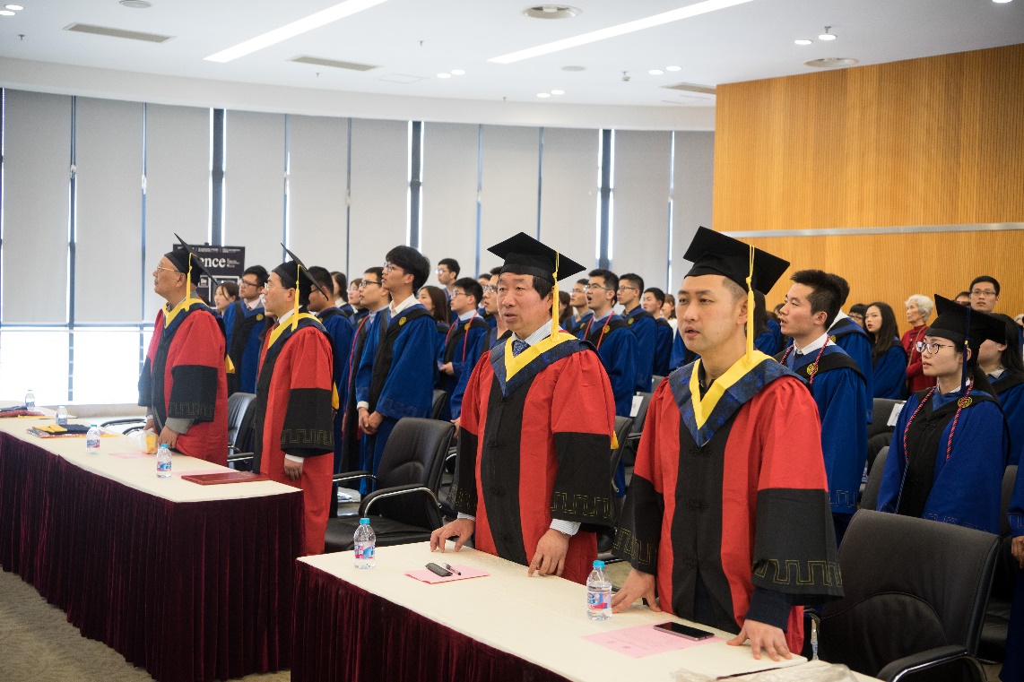 毕业典礼在雄壮的国歌中拉开序幕。朱新远代表学院全体师生,向毕业同学表示祝贺。在同学们走向人生的新阶段之际,他希望大家以交大化学化工人的身份,乘风破浪、勇敢前行;勉励大家以勇敢之精神和思辨之头脑,不忘初心、坚定信念、勇挑责任。最后希望同学们能将来常回学院看看, 并向同学们许下十年后相聚百年院庆。