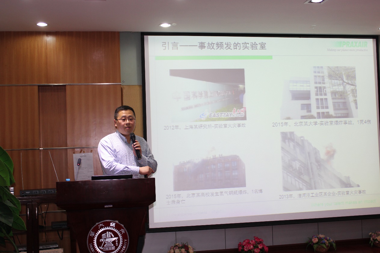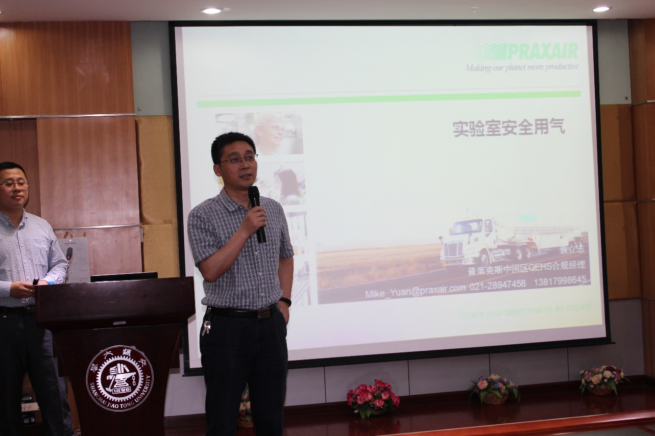 2017年6月7日下午,受到化学化工学院副院长彭宗林的邀请,普莱克斯实用气体有限公司代表团到访上海交通大学。在化学化工学院5楼演讲厅举行了关于实验室用气安全讲座。本次讲座普莱克斯资深安全管理专家袁立志主讲。副院长彭宗林,学校各院系安全员,研究生等40余人参加讲座。讲座由彭宗林主持。