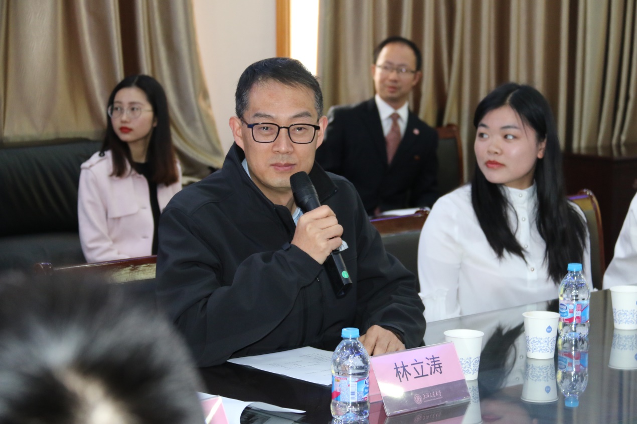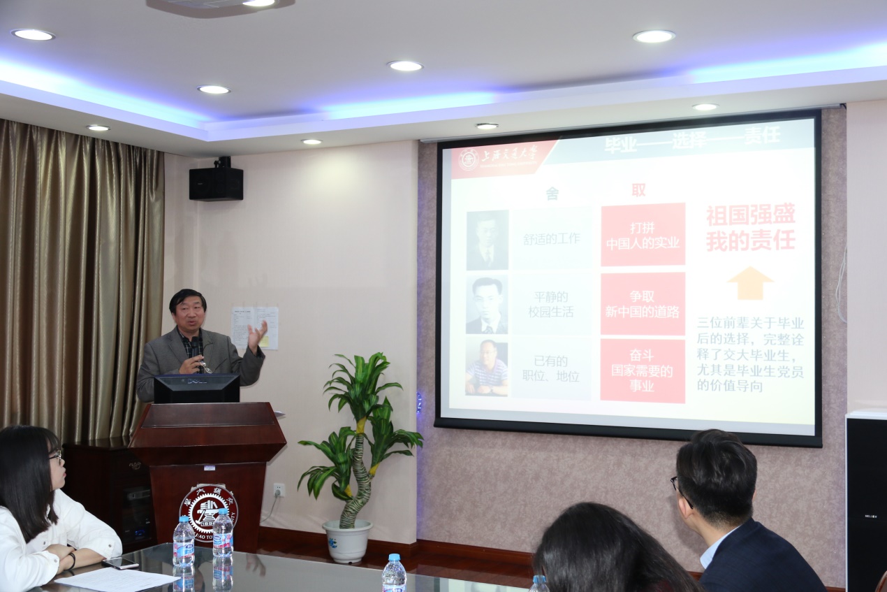 会议在国歌声中拉开帷幕。林立涛老师首先致辞,指出在毕业之际,开展“祖国强盛,我的责任”毕业生党员远航教育,是交大的优良传统,以党员同学参与为主,旨在重温初心,共同探讨在新岗位上如何实现自己的人生价值。上海交通大学一贯引导大学生树立高远的就业志向,优秀人才、优秀大学生的价值在于解决问题,为国家和社会做贡献。他希望同学们能脚踏实地,发奋进取,最终实现自己的人生价值,也希望若干年之后能够回到学校同学弟学妹分享经验。