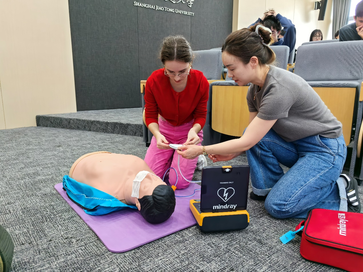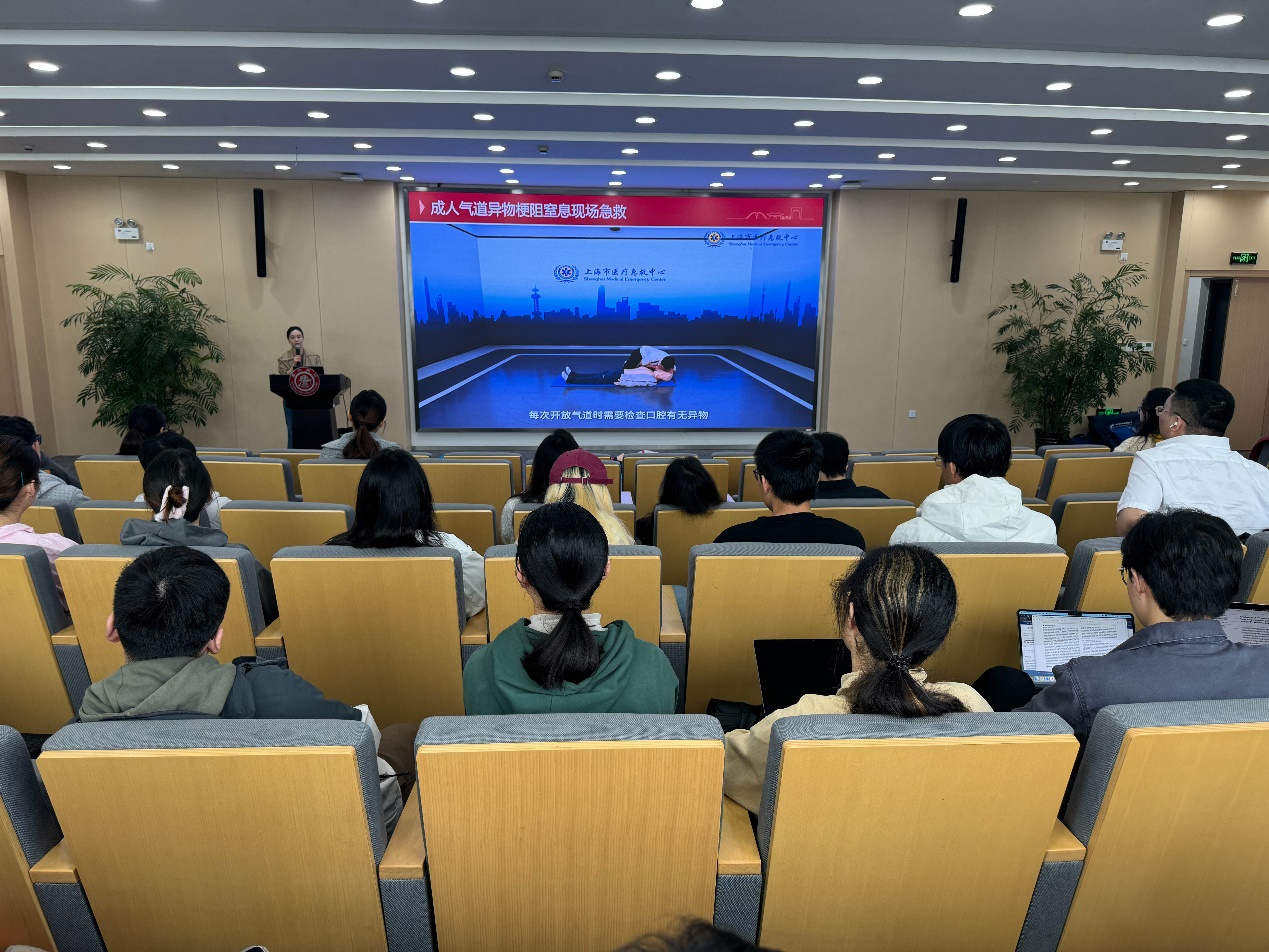 随后,王会娟、赵燕、马雪峰、陈林屾为同学们带来急救知识讲解。他们详细介绍了常见急救知识、外出血、气道异物梗阻、成人心肺复苏、自动体外除颤器(AED)的使用方法。通过生动的案例和视频讲解,同学们对急救知识有了更加深入的了解。