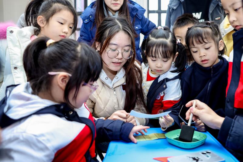 随后,交大化院同学带领小朋友共同参与化院特色小实验“蓝晒制作”。张驰给大家详细介绍了实验过程和注意事项,大学生们化身“小老师”,用浅显易懂的语言和实验演示带领小朋友们参与到蓝晒实验的制作中,小朋友们积极举手,踊跃提问,稚嫩的童声充满了对知识的渴望。化院学生还精心准备了各式各样有趣的化学展示小实验,让小朋友们感受化学的奇妙,现场气氛热烈非凡,活动在温馨愉快的氛围中圆满结束。