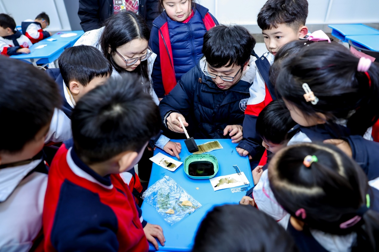 为引导青少年学生了解科学知识,激发对化学专业的兴趣,推进大中小学思政教育一体化建设,12月20日,上海交通大学化学化工学院组织学生前往上海交通大学附属浦东临港实验中学、小学开展“化梦·启航”科普中心成立暨科普启航日活动,将化学科普知识带进小学课堂。化学化工学院党委副书记王华博,附属浦东临港实验中学、小学校长宋玲,化学化工学院学生党建指导老师梁晶等出席本次活动。