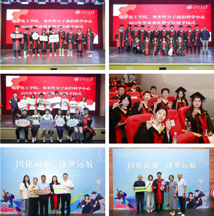 6月22日,化学化工学院、变革性分子前沿科学中心2025年毕业典礼暨学位授予仪式在李政道报告厅隆重举行。170余位本科生、研究生毕业生欢聚一堂,在师长和亲友的共同见证下,迎来求学路上的高光时刻,开启人生新征程。中国科学院院士颜德岳,中国科学院院士、化学化工学院院长樊春海,党委书记吴映强,常务副院长姜学松,变革性分子前沿科学中心副主任梁正,化学化工学院副院长王开学、张书宇、颜徐州、潘云翔,党委副书记王华博,化学工程系系主任龚学庆,以及来自各系的副系主任、导师代表和班主任出席典礼。典礼由王华博主持。