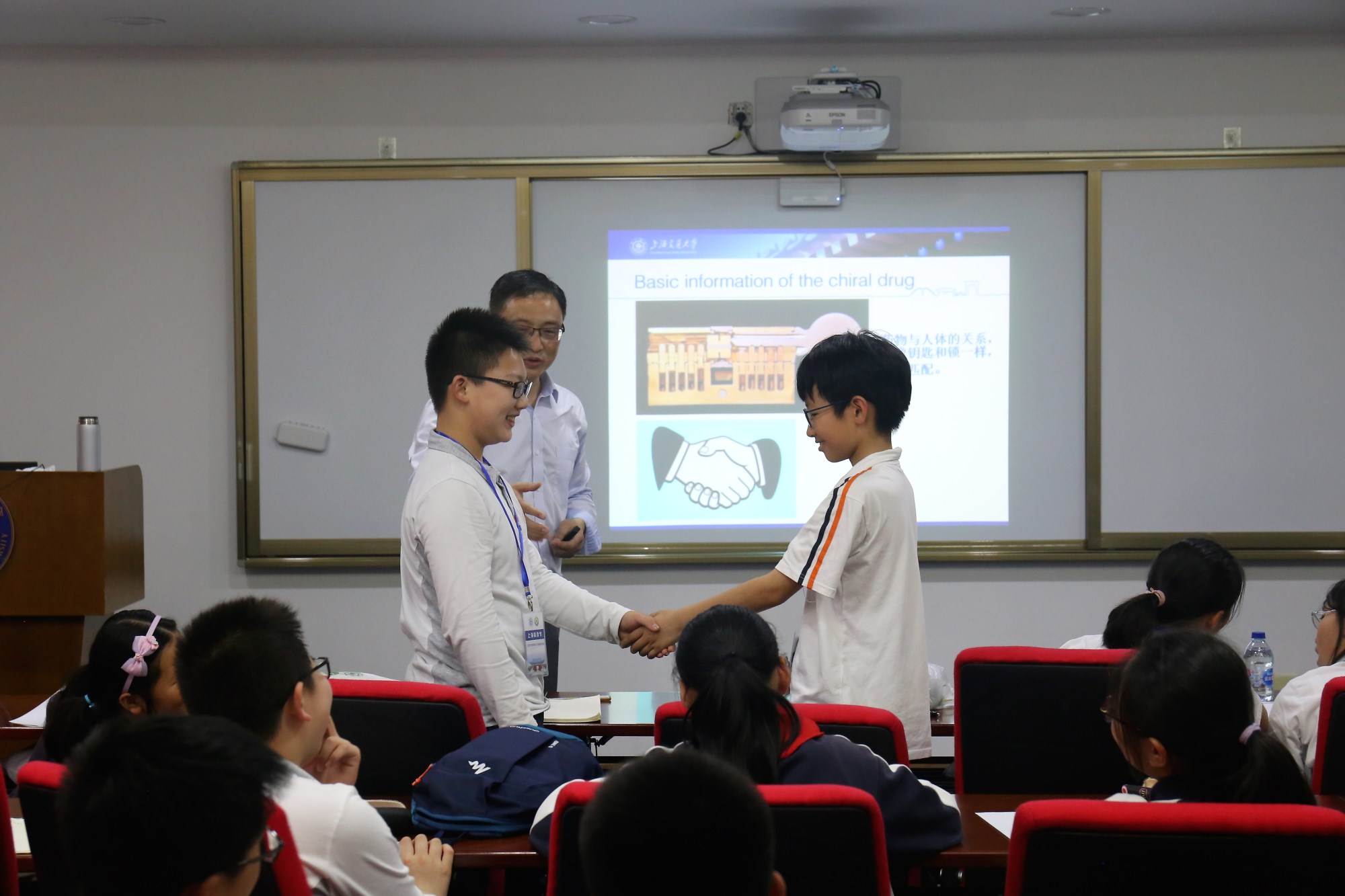 在品尝交大精美的午餐后,同学们开始“走进植物园——认识药用植物”的活动。我们有幸邀请到上海交通大学药学院王梦月和刘忠两位教授专家为同学们讲述了一个不一样的植物园。路边的一朵小花、一片树叶、一根枝条,在两位教授的嘴里瞬间化成为治病救人的药材。通过在植物园的实地观察,让同学们近距离地了解“牡丹和芍药”、“玫瑰与月季”等植物的不同。两位教授也通过各种中药的典故让同学们对中草药产生了浓厚的兴趣。 游园过后,刘德龙老师给同学们带来了以“诺奖级药物——青蒿素的前世今生”为题的讲座。通过1个小时的报告,让同学们不仅了解到中国科学家发现的青蒿素作为抗疟神药,已经挽救了无数患者的生命。同时,为了使青蒿素从“贵族药”变成”平民药“,交通大学开发了全球领先的青蒿素高效人工合成技术。讲座也坚定了同学们认真学习科学文化知识,培养动手能力以及奉献社会的决心。 最后,重点实验室主任张万斌教授代表重点实验室向同学们提出了殷切的期望。许多同学表示本次活动让他们受益匪浅,希望今后还能参加类似的活动。 活动结束后,重点实验室的老师和同学们合影留念,本次上海市科技节开放交流活动也顺利落幕。来自上海交通大学第二附属中学的学生们恋恋不舍的离开校园,而此刻一颗为中国科研事业奋斗的种子已经悄悄的在同学们的心中发芽。 本次活动内容丰富多彩,得到了广大参与学生和家长的一致肯定。 撰稿:张嘉诚