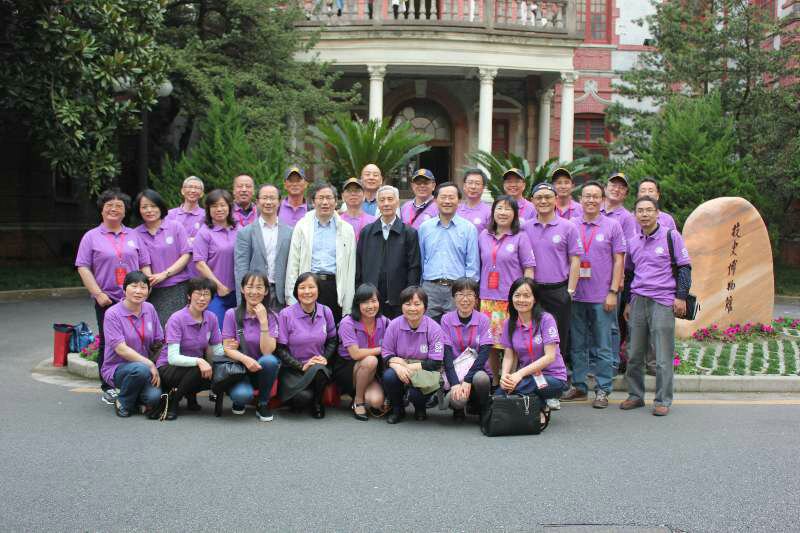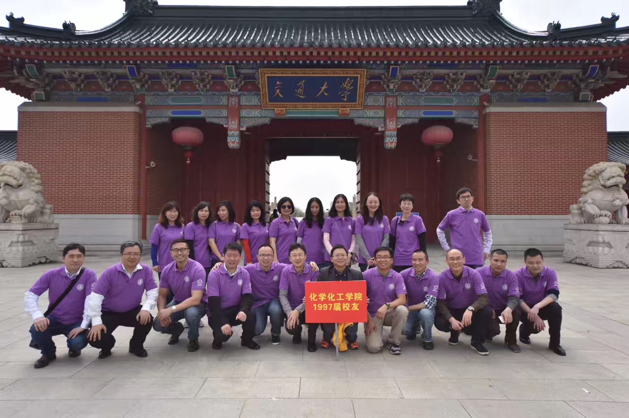上午,返校校友在化学楼签到,1987届校友了参加校庆大会,会后与上海交通大学党委书记姜斯宪,校长林忠钦,副校长吴旦,化院老领导张伟令合影留念。