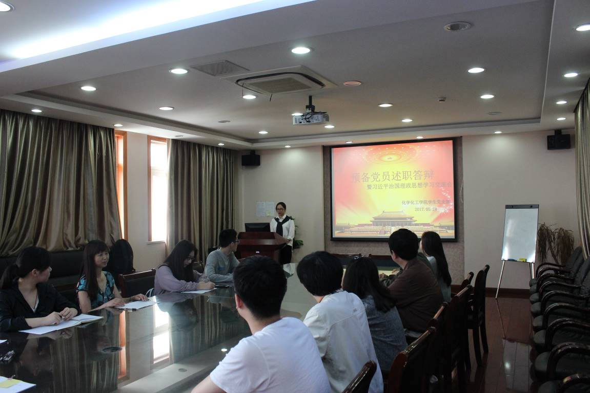 入党答辩制度是化学化工学院在党员发展工作中严格标准、严格培养、严格程序的一个重要环节。为推进“两学一做”学习教育常态化,5月24日下午,化院预备党员述职答辩暨习近平治国理政思想学习交流会在化学楼5楼会议室举行。学院关工委张斌老师、院学生党建工作负责人李安英老师、院党建联席会主席王雯、副主席章露枝和各党支书出席并担任评委,共有本硕博16名预备党员参加答辩。