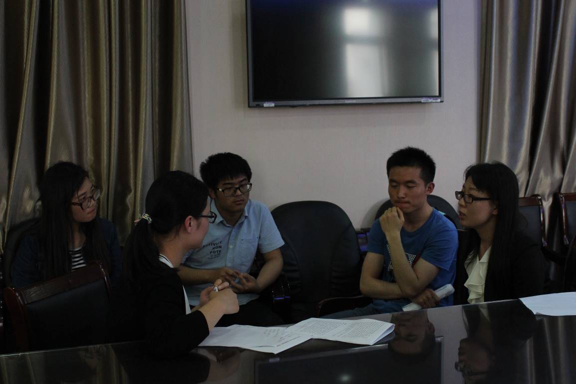在评委提问环节,评委就如何持续推进“两学一做”和习近平治国理政思想方面进行提问,帮助预备党员更好地认识自己,明确党员义务,争做合格党员。为了进一步考察答辩同学的综合素质,答辩采用了富有特色的“无领导小组讨论”环节,要求各位同学根据观看的视频内容,代入角色进行小组讨论并汇报。无领导小组讨论的主题开放而极具时代特点,包括一带一路、依法治国、懒政问题等等,预备党员展开了积极而热烈的讨论。 大家经过讨论一致认为,作为一名共产党员,一定要勇于承担社会责任,并要将社会责任与自己的职业规划相结合,真正为国家做出实在的贡献。王郁同学说,作为一个党员,在日常生活中,要以“四讲四有”为标准;要积极承担责任,不仅要认真完成上级布置的任务,更要主动联系群众、做好工作。