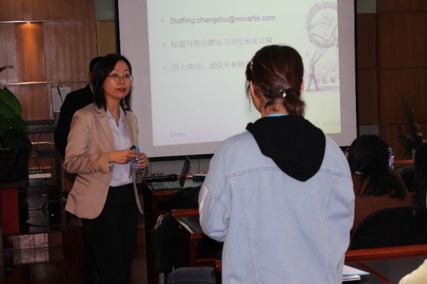 宣讲会上,张志明博士(Dr. Chiming Cheung),人力资源部魏星月女士向与会的广大同学介绍了诺华公司的企业研发产品,市场规模,企业文化,个人职业发展规划等。