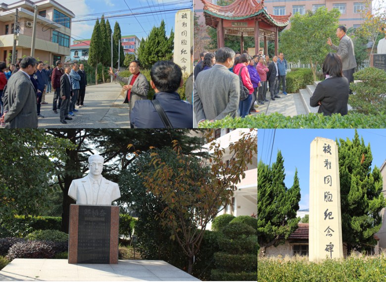 下午一时,代表团全体成员参观了十总镇被难同胞纪念碑、思忆革命纪念馆,同时瞻仰了邹韬奋雕像,现场认真聆听了原十总镇小学校长陆子森同志对革命老前辈们的事迹介绍。