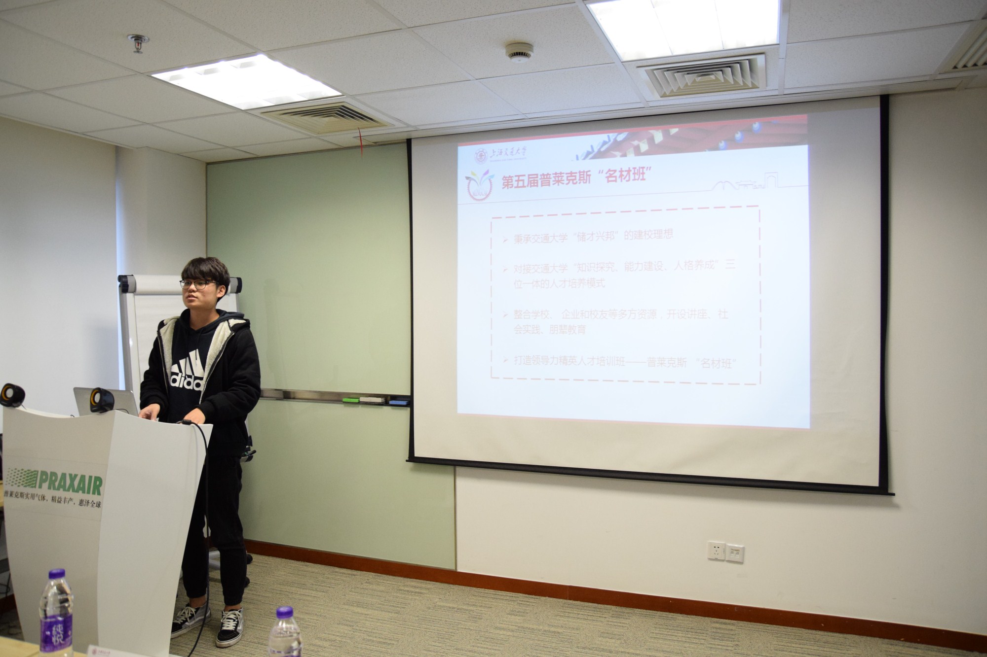 作为第五届名材班的班长,高朋同学从办学理念、班级规模、组织结构、开展活动等各方面向大家做了汇报。今年夏天,名材班同学们更是远赴宁夏,和宁夏师范学院共同开展爱心暑托班社会实践活动,最终被上海交通大学评为优秀社会实践项目二等奖。
