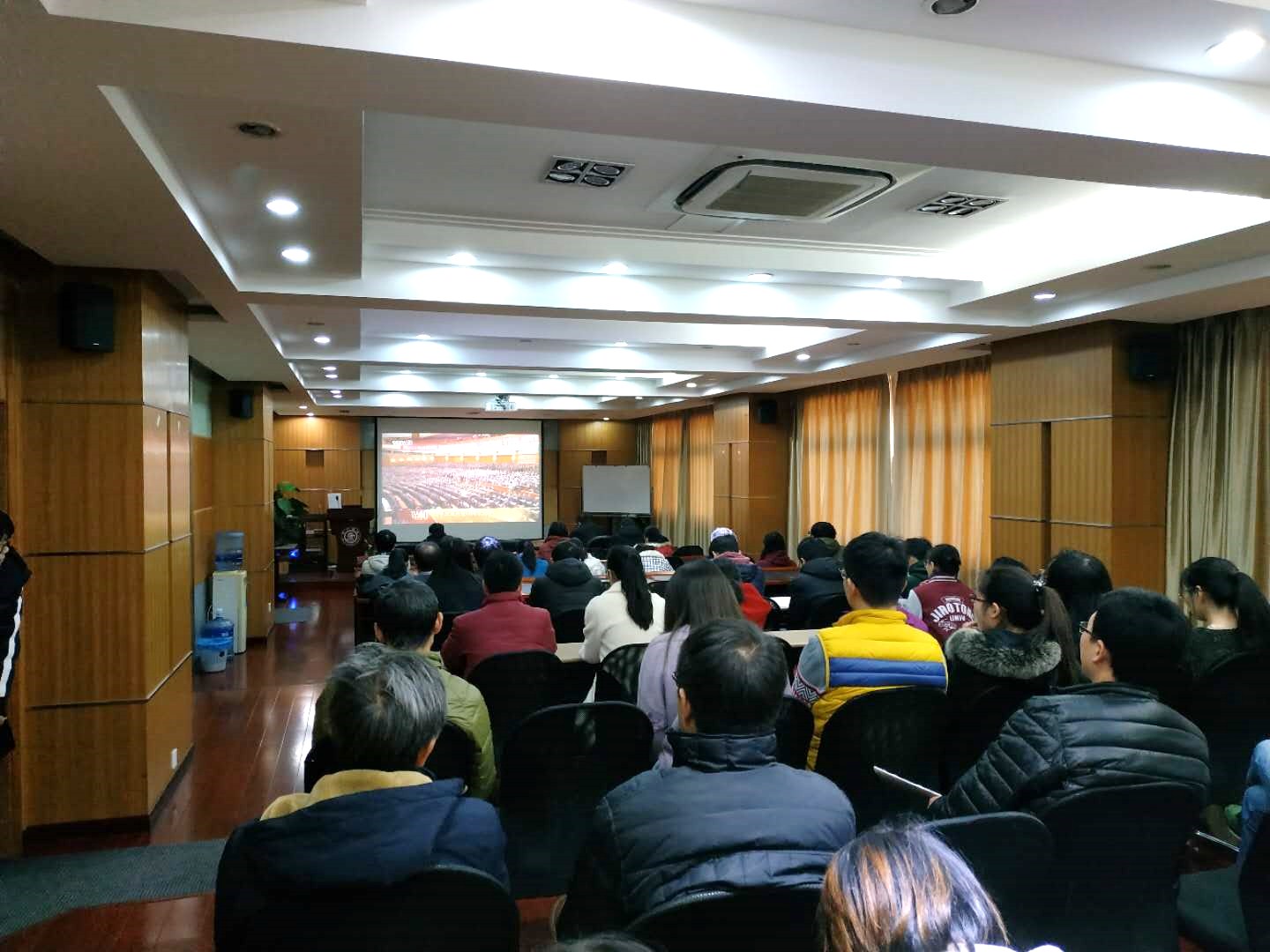 在直播现场,教师、同学对总书记的号召:“全国各族人民要更加紧密的团结在党中央周围,高举中国特色社会主义伟大旗帜,不忘初心,牢记使命,将改革开放进行到底,不断实现人民对美好生活的向往,在新时代创造中华民族新的更大奇迹!创造让世界刮目相看的新的更大奇迹!”进行了认真的学习和领会。