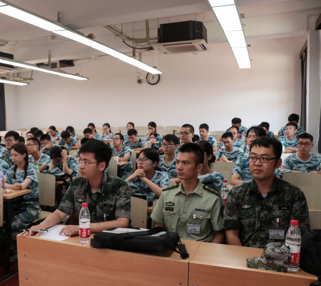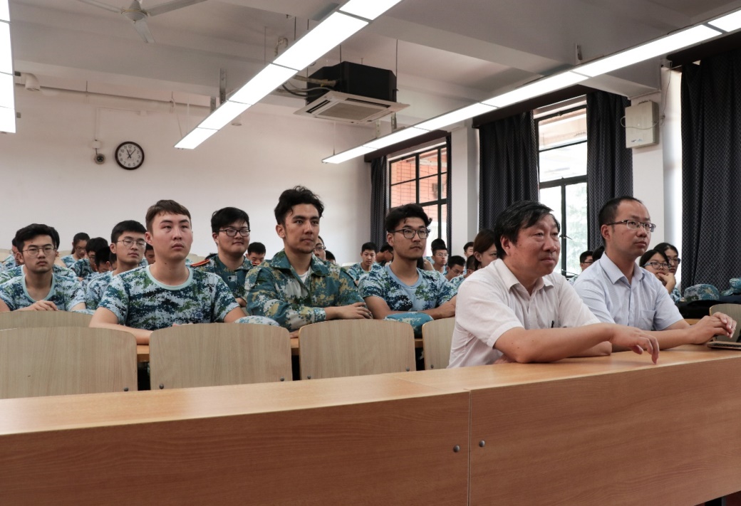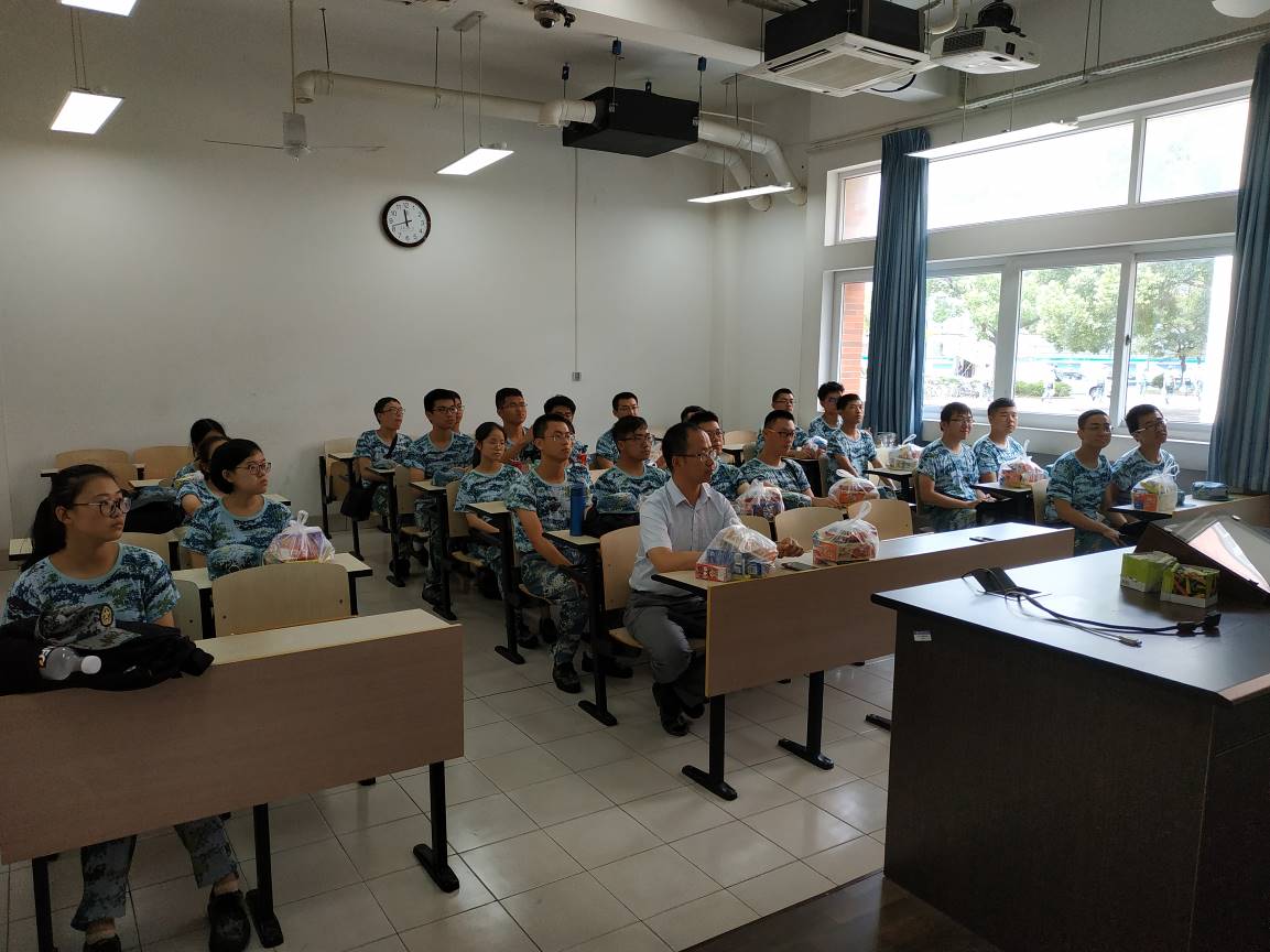 随后,一行人员又来到东中院1-105,对致远学院化学方向的参训学生进行军训慰问。慰问会上,致远化学方向的匡华艺和张隆源两位同学对军训生活进行了回顾、总结和展望,与大家分享了军训的所感所得,并号召大家继续发扬军训精神,磨练自身的意志,养成良好的习惯,迎接未来的学习和科研任务。