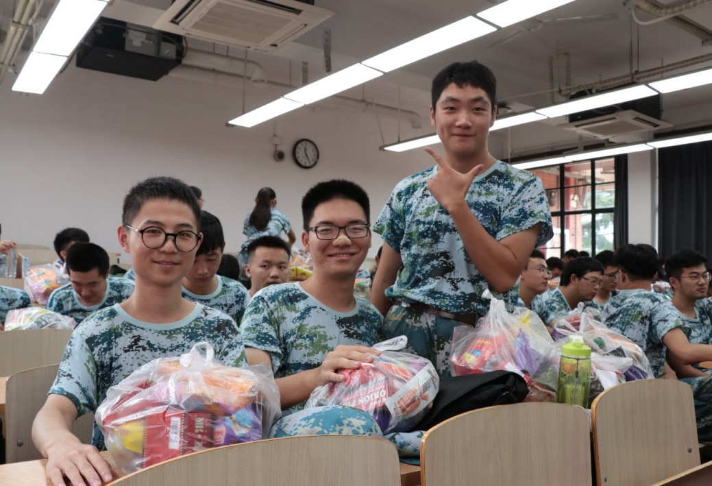 在欢声笑语中,慰问会渐渐进入了尾声。拎着慰问品的同学们依次走出教室,脸上挂着的是满满的笑容,心底充盈的是对军训满满的信心。相信在接下来的军训生活中,化院学子将依然保持高昂的热情和斗志,以优异的成绩为军训画上圆满的句号。