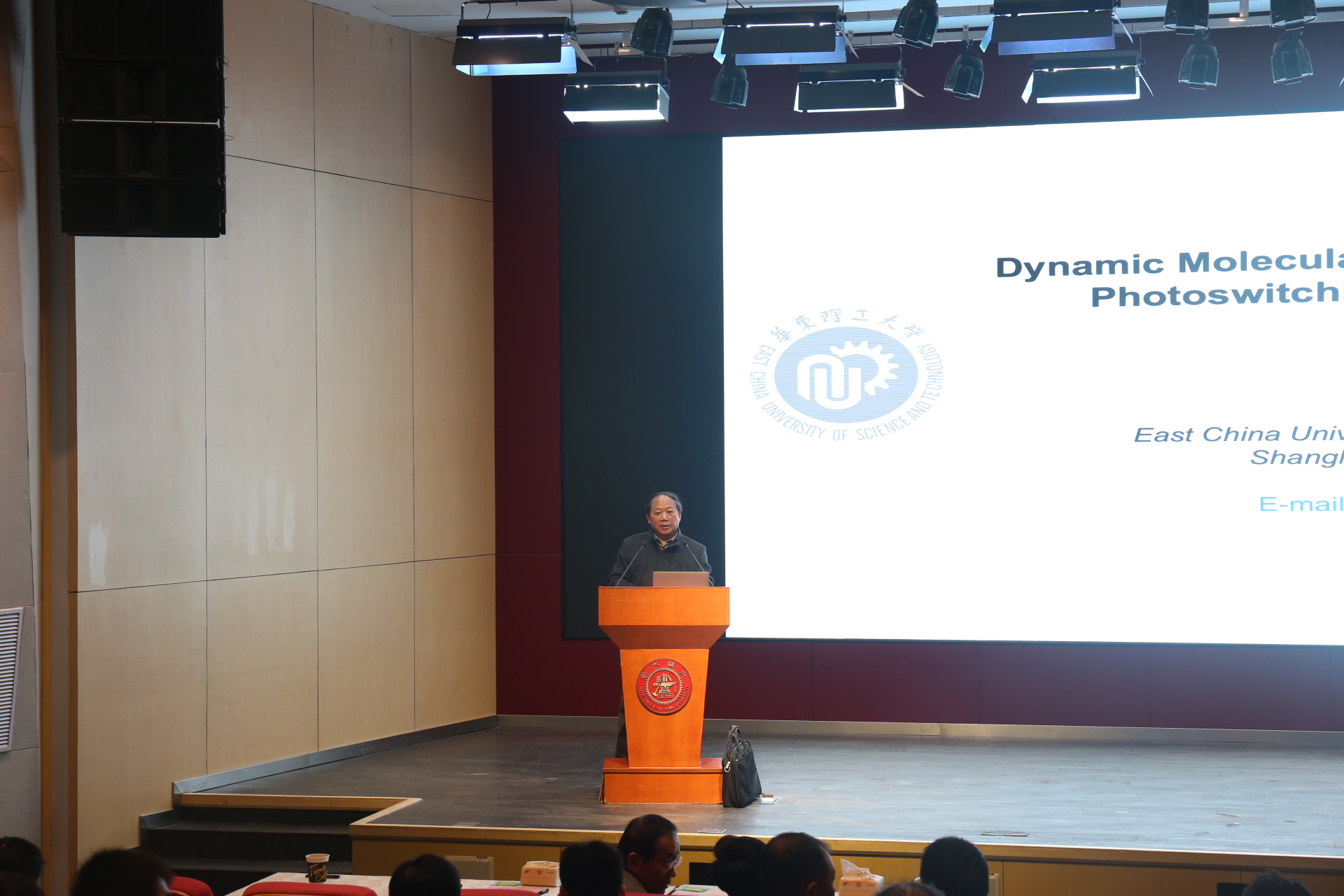 研讨会分为上下半场,上半场由涂永强院士主持。华东理工大学的田禾院士和中科院上海药物研究所的岳建民院士分别为大家做了“Dynamic Molecular Fluorescent Probes with Assembling”和“天然产物是发现生物功能分子的重要资源”的报告。精彩的报告引起了大家广泛的兴趣及会后热烈的讨论。互动环节中,两位院士用深入浅出的语言解答了同学们提出的问题,进一步激发了同学们的科研兴趣。
