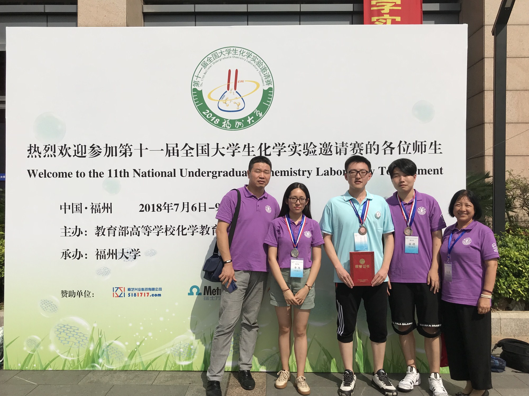2018年7月6日至9日,第十一届全国大学生化学实验邀请赛在福州大学举行,经过激烈角逐,上海交通大学化学化工学院应用化学专业学生李丹在大赛中摘得银牌,谢悦、张璞获铜牌。 本次大赛共有来自全国43所高校的127名学生和200余名指导教师参加。采用15%一等奖,25%二等奖,35%三等奖的评奖模式引入竞争机制,对无机与分析化学实验、有机化学实验、物化实验的基本操作及理论知识进行考核。大赛秉承“重参与、淡名次”的精神,推动化学实验教学模式、教学内容、教学方法的改革,培养创新型化学人才。全国大学生化学实验邀请赛由教育部高等学校化学教育研究中心主办,是国家自然科学基金委资助的中国高等院校化学实验教学的交流盛会,也是我国高等学校化学学科面向本科生进行的最高级别比赛。