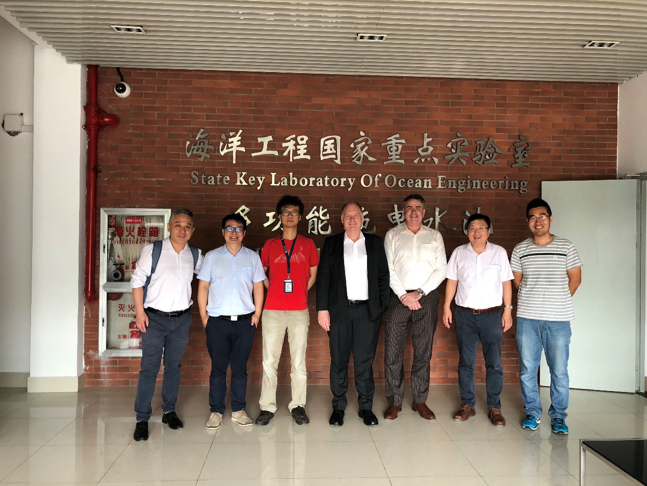 代表团成员阿德莱德大学工程、计算机与数学科学学院院长Anton Middelberg教授、化工系讲座教授与J. Mater. Chem. A 副主编Shizhang Qiao教授、化工系David Lewis教授、国际交流处主任Zonghan Xie教授、海洋波实验室Boyin Ding助理教授,上海交通大学科研院常务副院长兼化院院长朱新远教授、化院副院长郑思珣教授、先进有机功能材料实验室负责人张帆研究员、二维软物质实验室负责人庄小东研究员、材料科学与工程学院和金属基国家重点实验室顾佳俊教授、中英低碳国际学院董雪助理教授等参与会谈。 会谈中,双方分别就各自学院和国家重点实验室特色进行了介绍,由Ding博士分享了阿德莱德大学能源技术中心和上海交通大学海洋工程国家重点实验室间的合作经验。此外,双方就人才培养和科研合作模式展开深入交流,为进一步合作建立了人员沟通渠道。会谈后,澳方代表团参观了海洋工程国家重点实验室船模拖曳水池实验室(李晔教授接待并介绍)、金属基国家重点实验室(顾佳俊教授接待并介绍)。