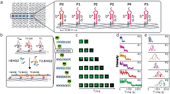 为了展示这一DNA分子机器人的智能运算能力,他们在DNA纳米结构上设计了一个迷宫,利用DNA分子机器人的并行运算能力来求解这个迷宫问题。迷宫有唯一的入口(A)和唯一的出口(J),以及四个非出口的终点(C,F,G,H)。在DNA分子机器人行走过程中,每个结构上DNA分子会从起点开始,走向一个终点,或者走向出口。通过单分子成像,他们观察到了DNA分子行走过的所有路径,从而可以获得迷宫正确行走路径的解。这种将DNA分子反应与智能运算的有机结合,为发展单分子智能传感和疾病诊疗提供了新思路。