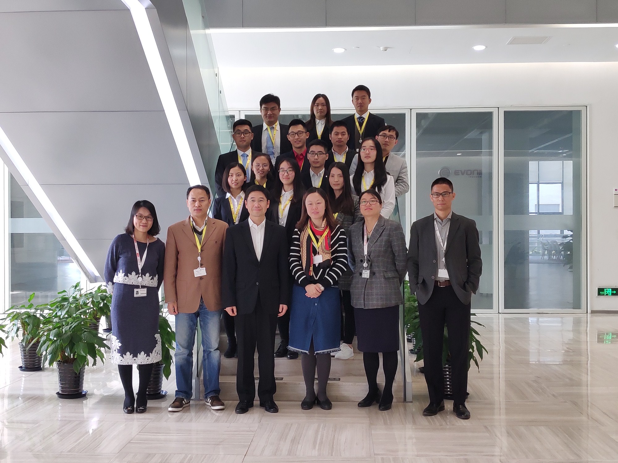 11月22日,2018赢创-上海交通大学博士生培养基金终评在赢创莘庄基地举行,化学化工学院副院长周永丰教授、材料科学与工程学院窦红静教授,赢创大中华区企业创新副总裁冯兢博士、企业创新部谢田甜博士、姜金华博士作为评委出席终评会。