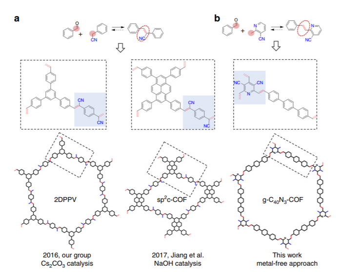 图5. 烯烃桥连的基于1,3,5-三嗪的COF结构示意图