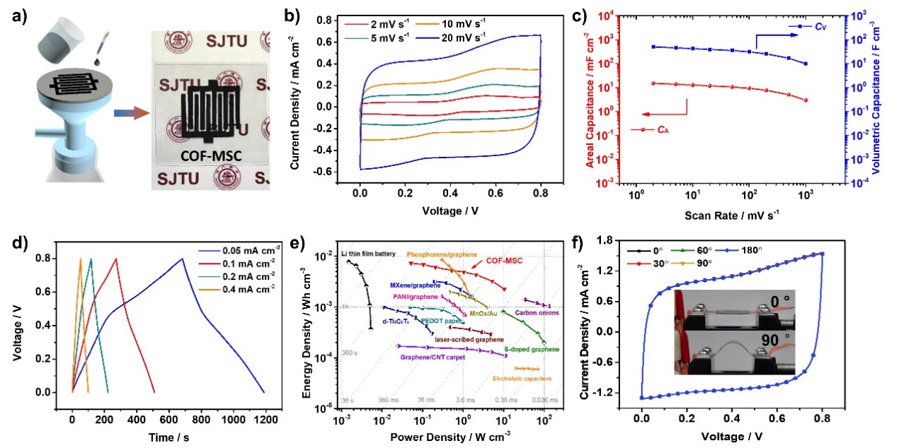 图6. 烯烃桥连的COF应用于微型超级电容器