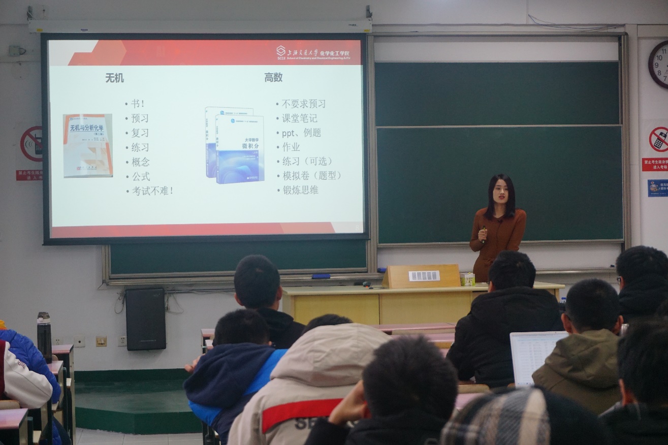 梁晶老师带领大家回顾了开学100天以来共同经历的事情,从新生第一课、“21天习惯养成计划”再到专业预选和分流,充分调动了大家的注意力。接着围绕着“学在交大”,梁老师向新生强调了学习的重要性,“以绝大多数人的努力程度之低根本轮不到拼天赋”,勉励大家戒骄戒躁,并结合自身经历,给大家分享了学习经验,鼓励大家展望未来,努力奋斗。此外,梁老师还跟大家分享了化院的海外交流项目,并鼓励同学们积极参与科研,全面提升自己。最后,在期末考试来临之际,梁老师提醒新生们严守学业诚信,不碰法律道德与校纪校规红线,并预祝大家考试顺利。