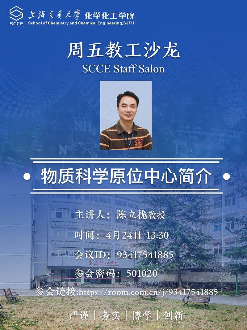 4月24日下午,本期化学化工学院周五教工沙龙特邀请物质科学原位中心负责人陈立桅教授介绍即将投入使用的物质科学原位中心。