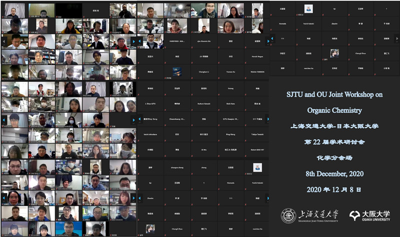 2020年12月8日,由上海市手性药物分子工程重点实验室、上海交通大学化学化工学院和药学院主办,上海交通大学-日本大阪大学第22届学术研讨会在ZOOM线上会议室举行。