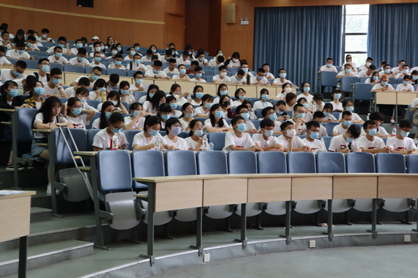 教务处副处长陈峰首先代表学校向自然科学试验班2020级全体新生及家长表示欢迎,他介绍了自然科学试验班从2015年至今的发展历程、培养计划及学科特色,鼓励同学们充分利用平台的广阔资源提升自己,不断完善,收获成长与优秀。