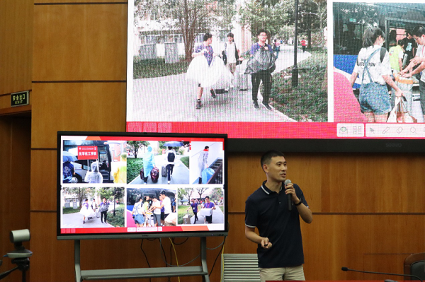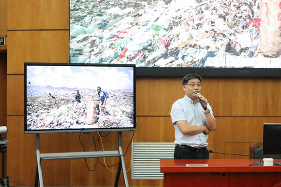 环境科学与工程学院常务副院长曹心德介绍了学院师生洱海水质治理、绿格公益团治沙、南极科学考察的故事,号召新生保护绿水青山,环抱绿色未来。