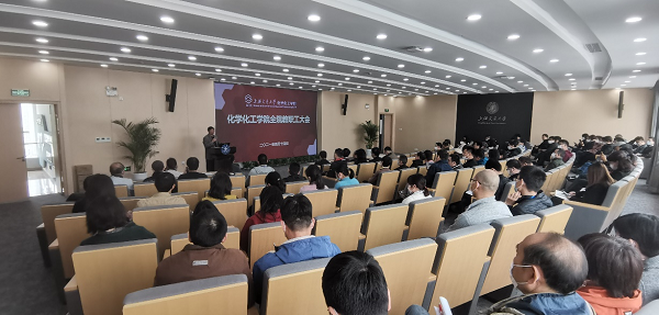 2021年4月14日下午,化学化工学院2021年春季学期全院教职工大会在霞光楼200演讲厅举行,学院党政领导班子成员及全体教职工参加会议。会议由院党委书记贾金平主持。