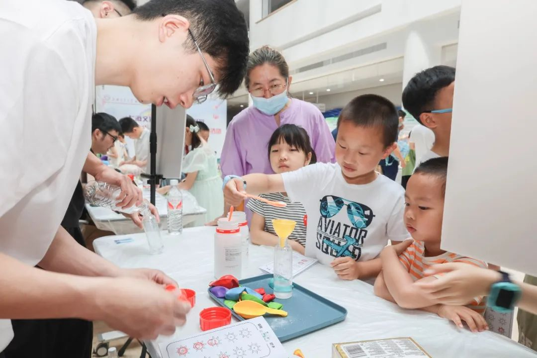 为积极响应习近平总书记关于建设教育强国重要讲话精神,激发学生崇尚科学、探索未知的兴趣,培养其探索性、创新性思维品质,6月3日上午,上海交通大学化学化工学院教工党支部、学院工会和学生党支部联合共同举办了第二届“化小苗趣味实验”公益科普活动。活动得到了转化医学研究院大力支持,成功在转化医学大楼(唐仲英楼)一楼大厅举行。来自实验室及化学化工学院的50余名师生志愿者与70余名不同年龄层次的小朋友共同开启了一场科普相容、快乐相随的化学实验之旅。