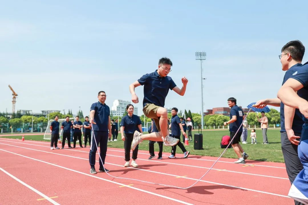 合力运球、跳长绳、同心协力、接力传乒乓球、传呼啦圈、拔河6个团体项目依次开展,老师们精神饱满、斗志昂扬,展现出了积极的参赛热情。不少教职工携家属观战,场边喝彩声、欢笑声不断,活动现场气氛活跃。